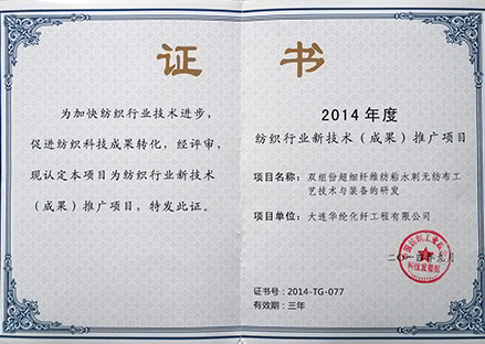 紡織行業(yè)新技術(shù)(成果)推廣項(xiàng)目證書(shū)